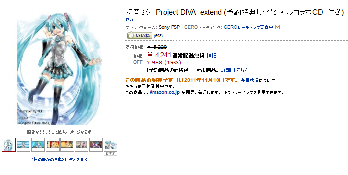初音ミク -Project DIVA- extend (予約特典「スペシャルコラボCD」付き)をamazonで予約する。